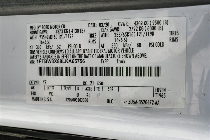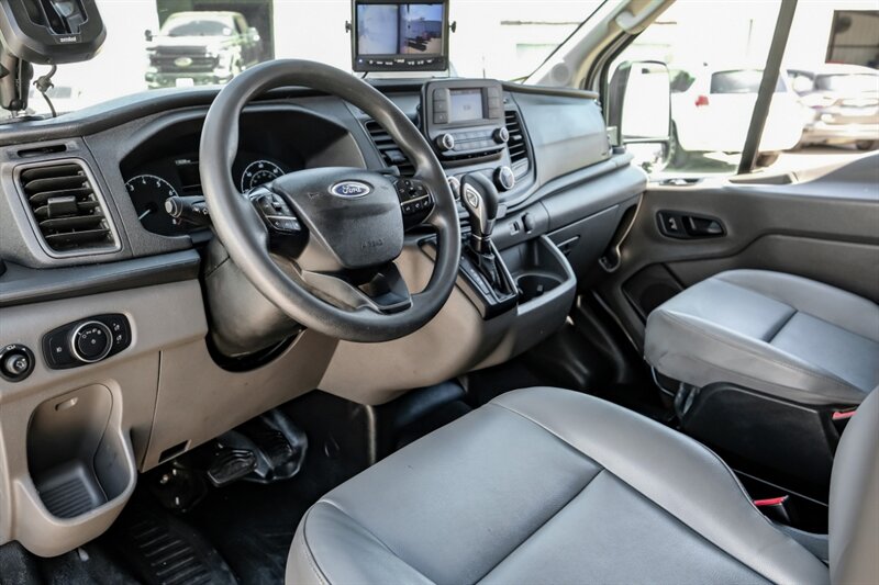 Introducing the 2020 Ford Transit 350, a versatile and reliable workhorse designed to meet your business needs. This vehicle comes in a crisp Oxford White exterior color that exudes professionalism, paired with a sophisticated Dark Palazzo Grey interior for a touch of elegance.
